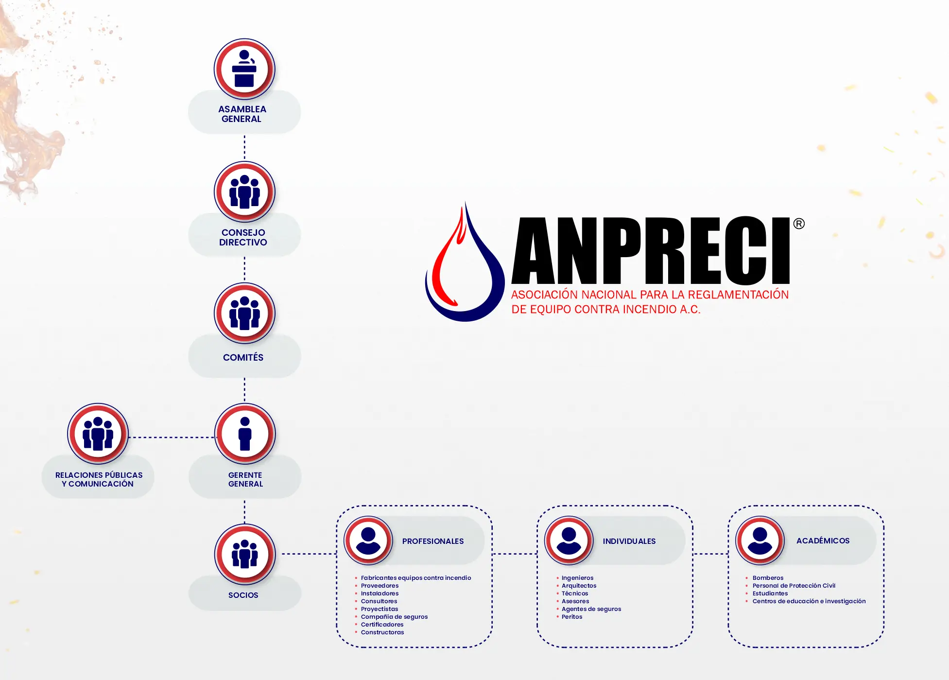 Fundada en 2010 ANPRECI, A.C. crea normas y manuales técnicos que sirven como referencia para empresas de seguridad, fabricantes de bombas, proyectistas hidráulicos, cuerpos de bomberos, autoridades y público interesado en la protección de personas y bienes.
